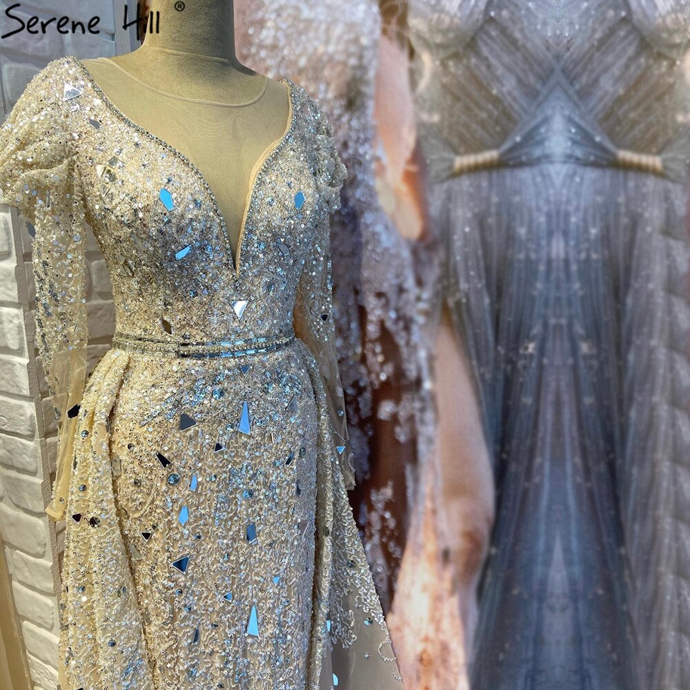 Muslim Luxury Nude Silver Evening Dresses Gowns 2025 Overskirt Beaded Mermaid Elegant For Woman Party LA71351