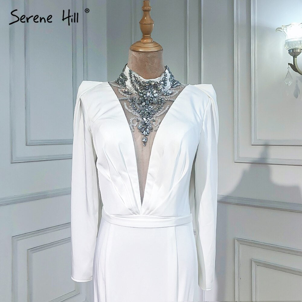 Muslim Mermaid Satin Evening Dresseses Gowns 2025 White Elegant Beaded For Women Party LA6430