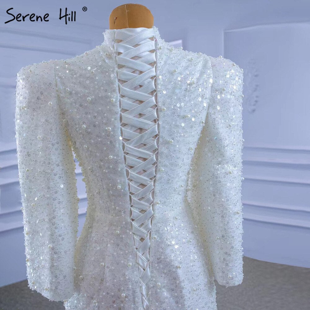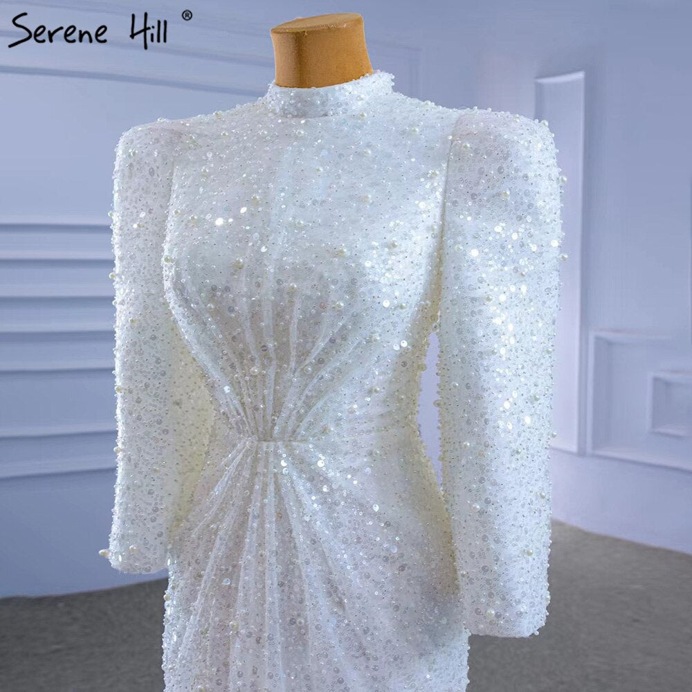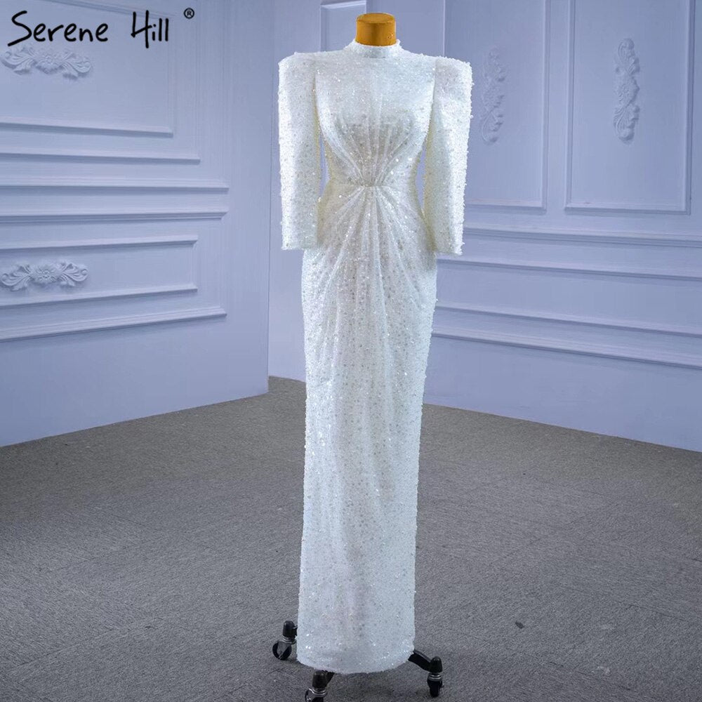 Muslim Mermaid White Evening Dresses Gowns 2025 Luxury Elegant Beaded For Women Party HM67335
