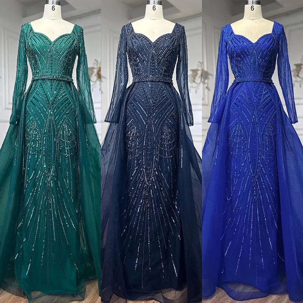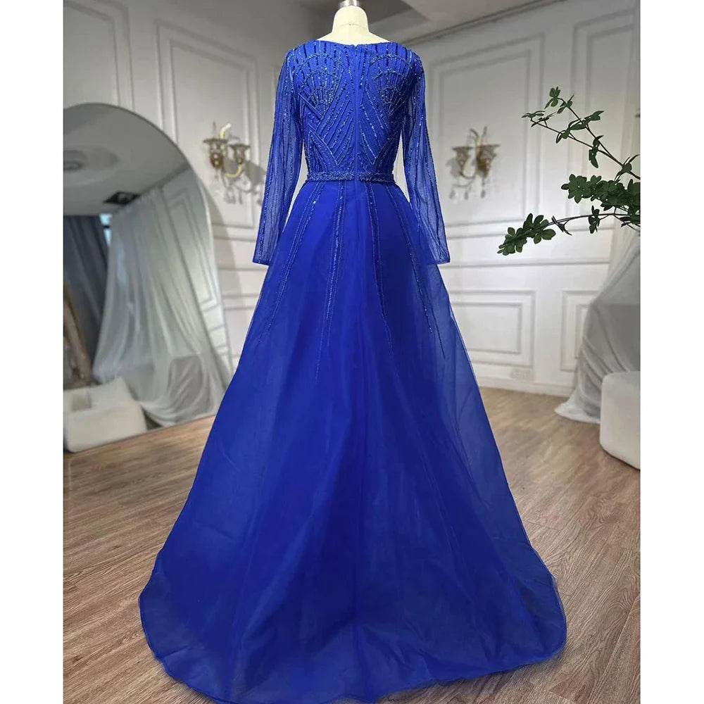 Muslim Royal Blue A Line Sweetheart Beaded Luxury Dubai Evening Dresses Gowns For Women Wedding Party 2025 LA72221