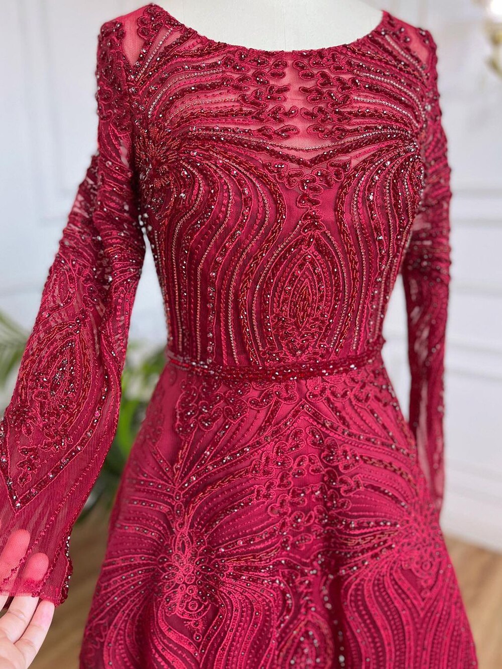 Muslim Wine Red Luxury Evening Dresses Gowns 2025 A-Line Beaded For Women Wedding Party LA71873