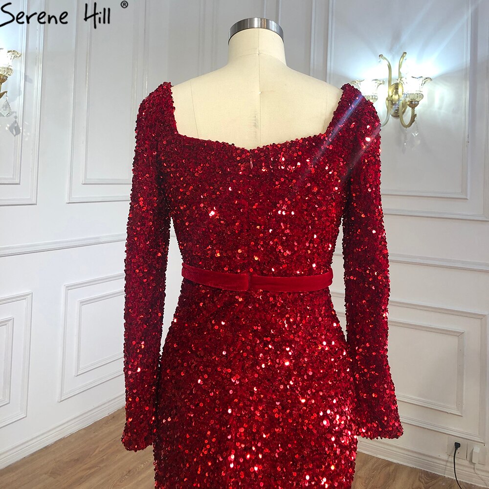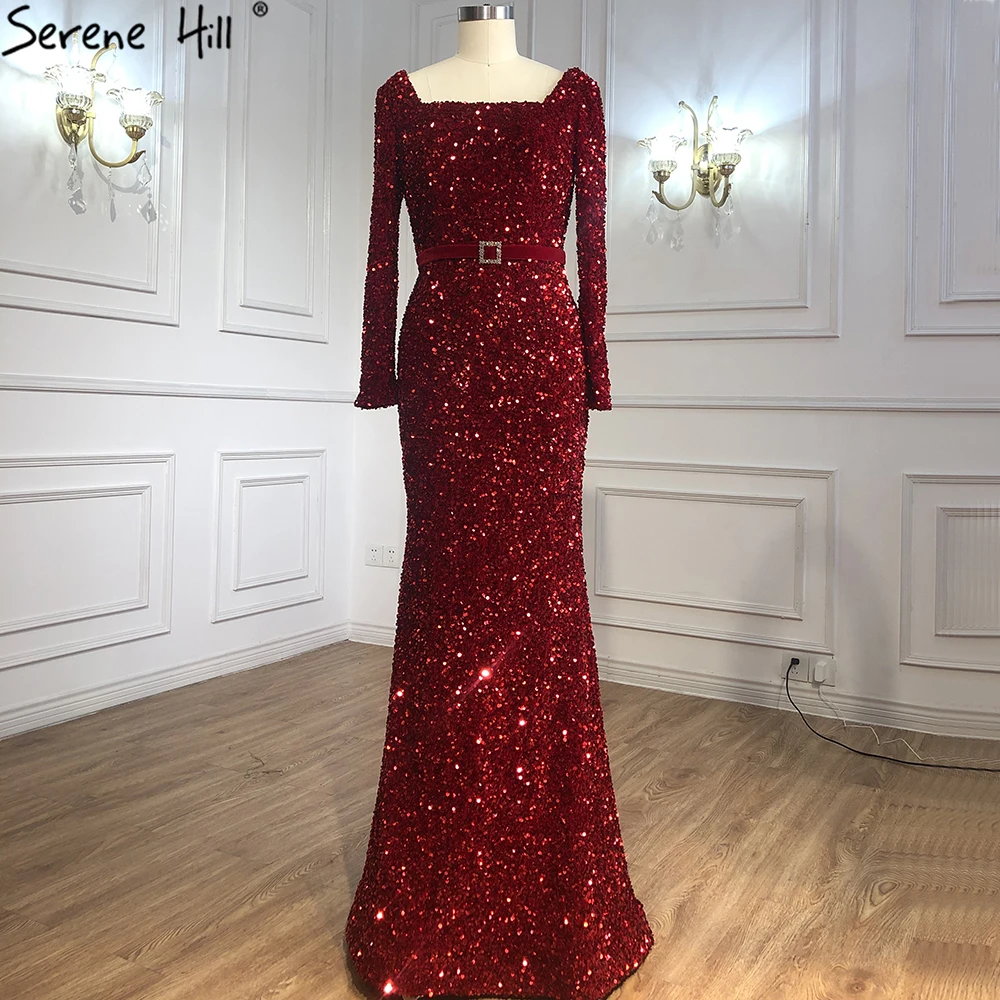 Muslim Wine Red Mermaid Evening Dresses Gowns 2025 Luxury Long Sleeves Elegant For Women Party LA70797