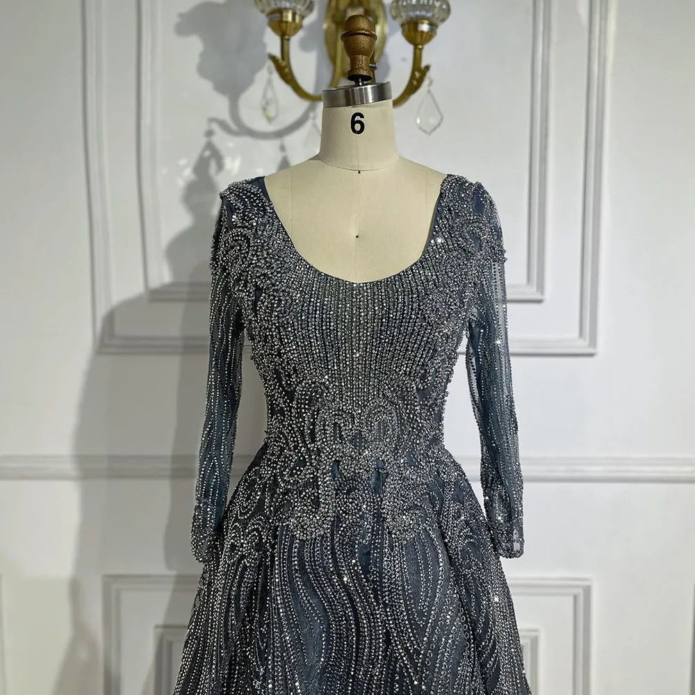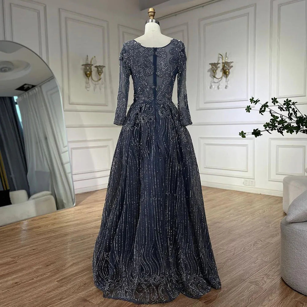 Muslim Navy Blue Overskirt Luxury Dubai Evening Dresses 2025 Elegant A Line Beaded For Women Party LA70773A