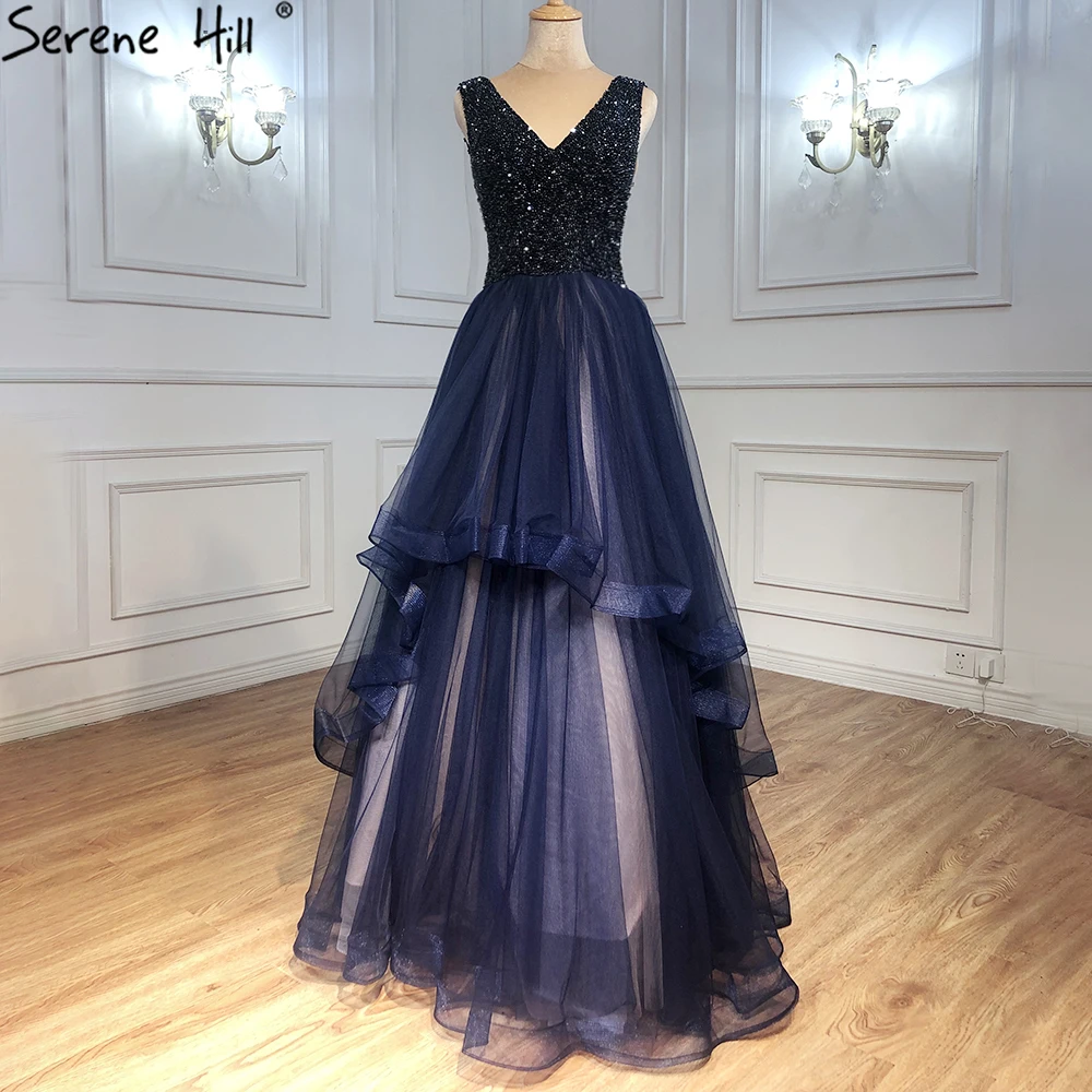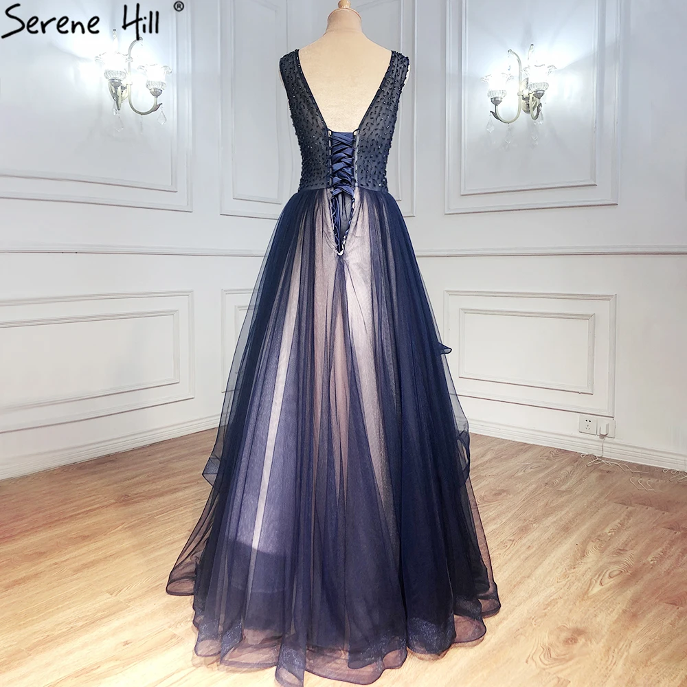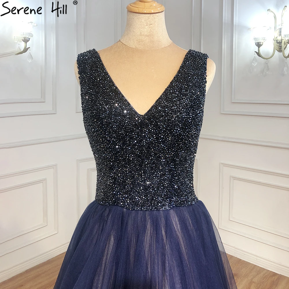 Navy Blue A-Line Evening Dresses Gowns 2025 Sleeveless Beaded Sexy For Women Wedding Party LA71125