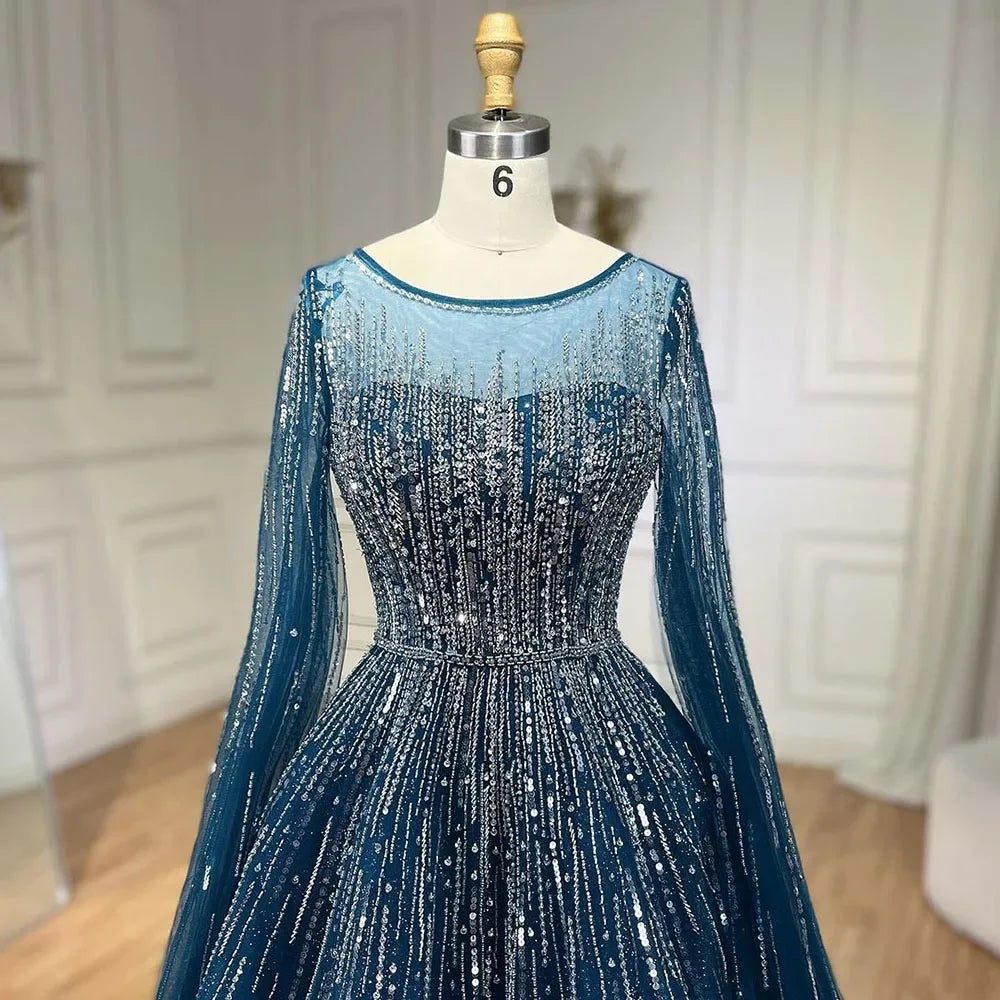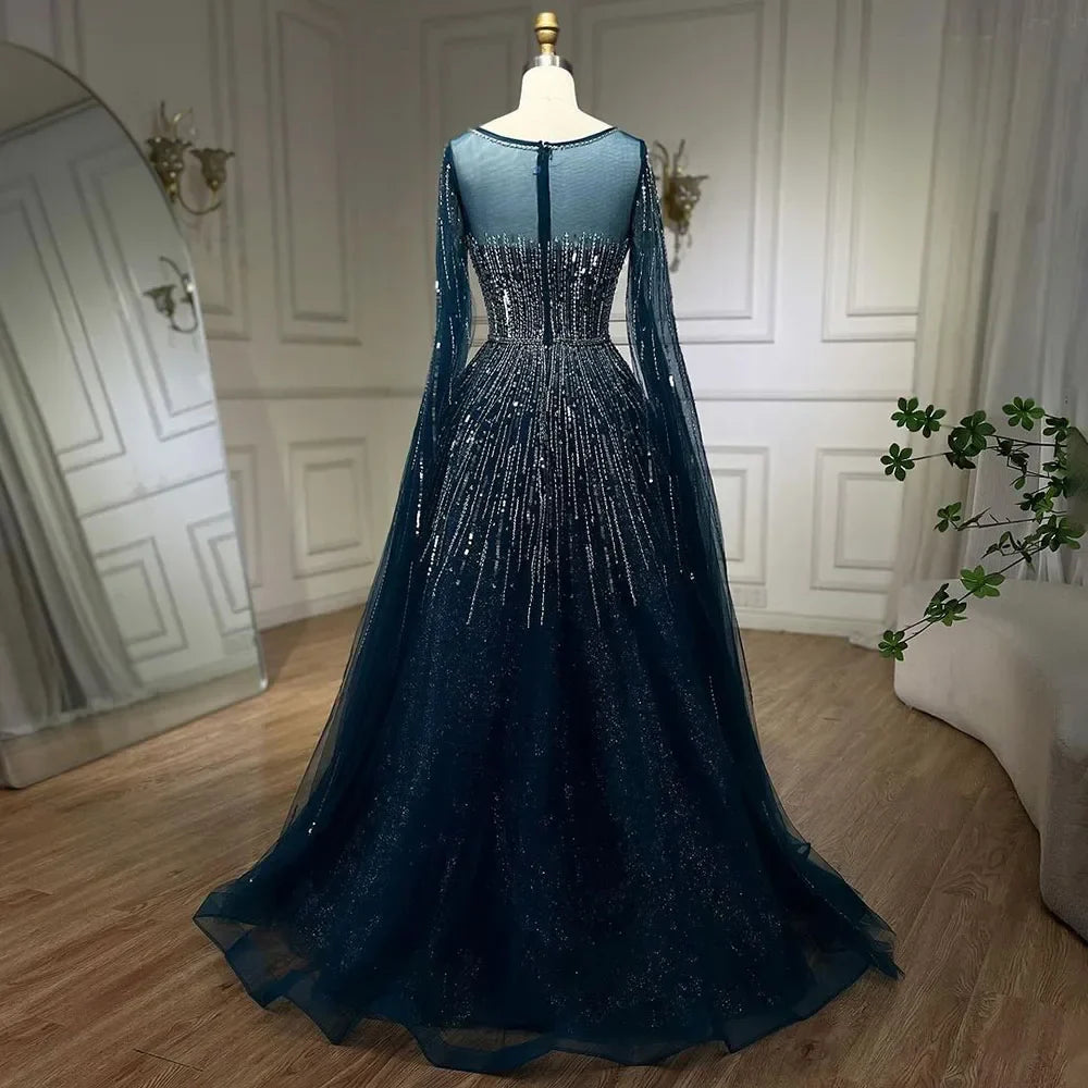 Navy Blue Luxury Evening Dresses with Cape Sleeves A-Line Beaded Gown For Women's Wedding Party 2025 LA72248A