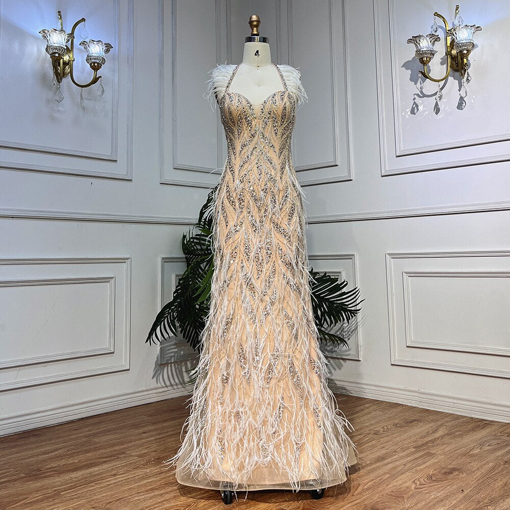 Nude Sexy Strap Mermaid Luxury Feather Beads Evening Dresses Dubai Gowns For Women Wedding Party 2025 LA72010