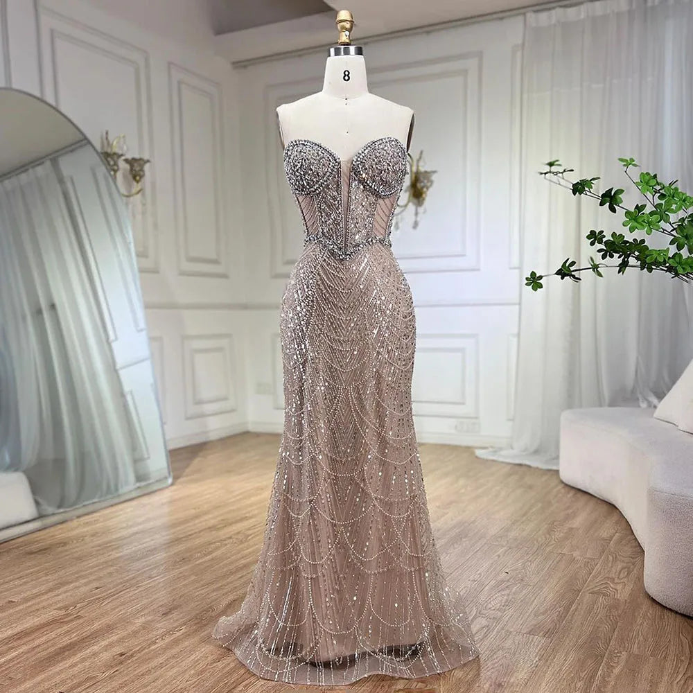 Nude Strapless Mermaid Luxury Evening Dresses Gowns And Beaded Design Arabic 2025 For Women Wedding Party LA72249
