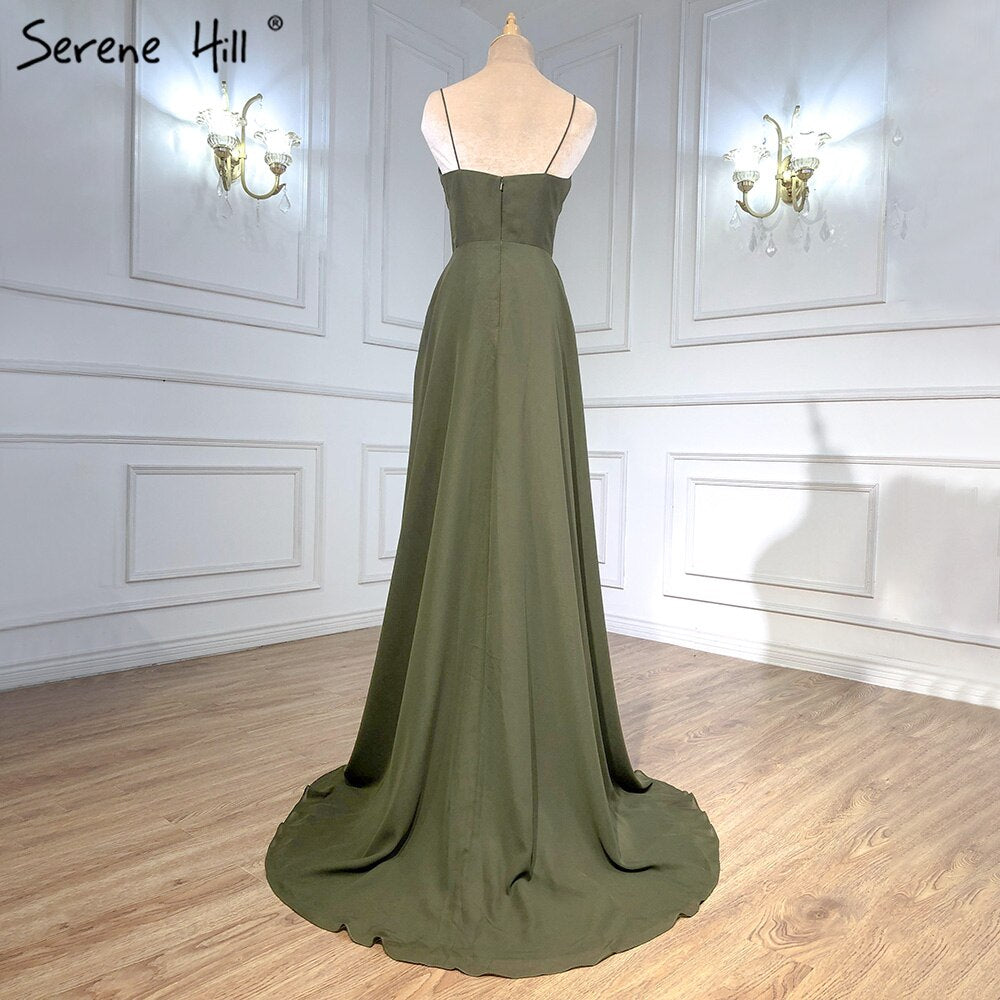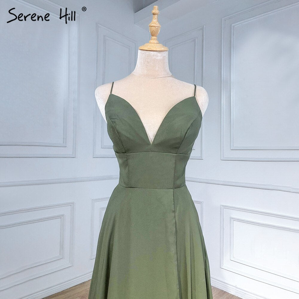 Olive Green Satin Evening Dresses Gowns 2025 Spaghetti Strap Simple For Women Party LA71298