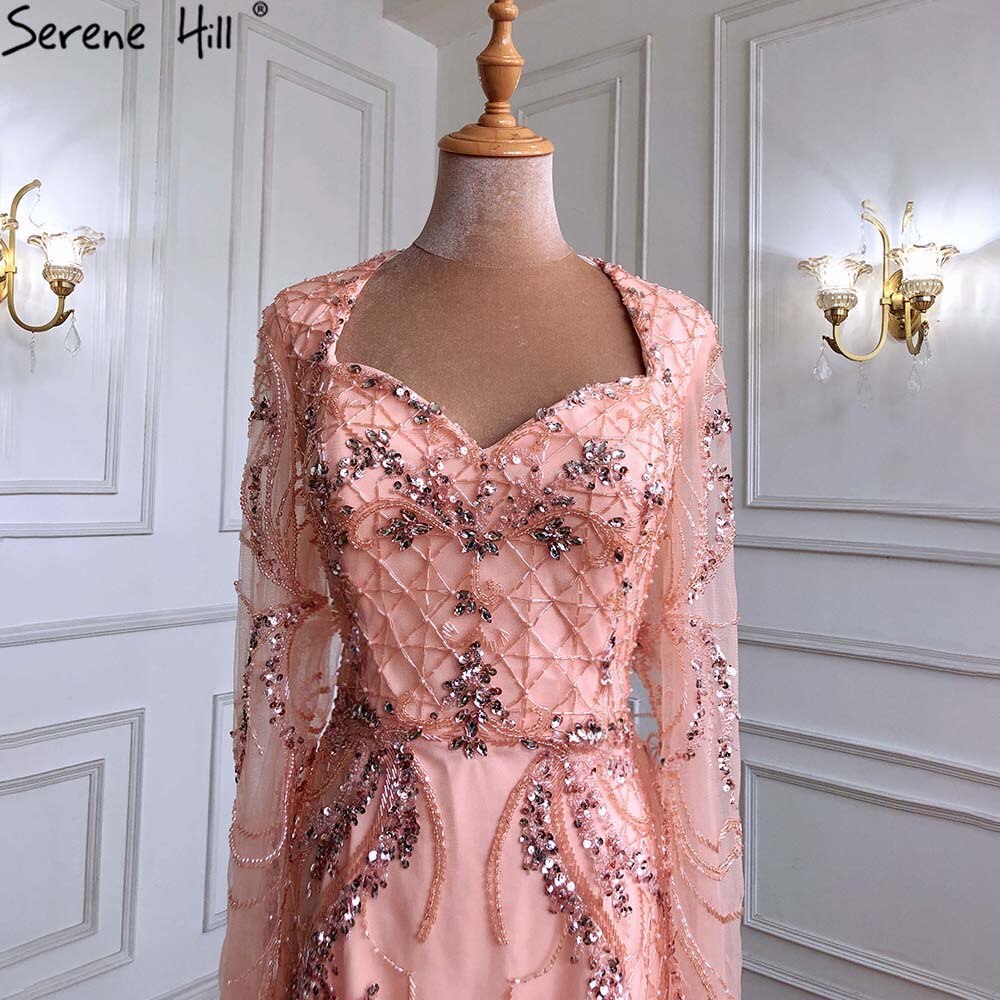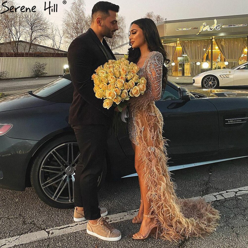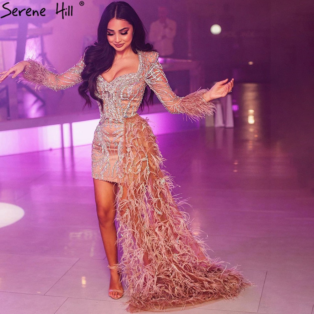 Peach Mermaid With Train Cocktail Dresses 2025 Beading Feathers Elegant Designer For Women Party LA71113