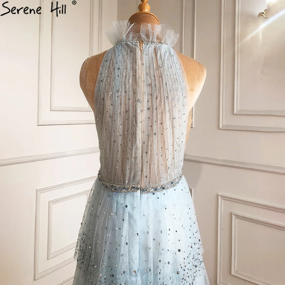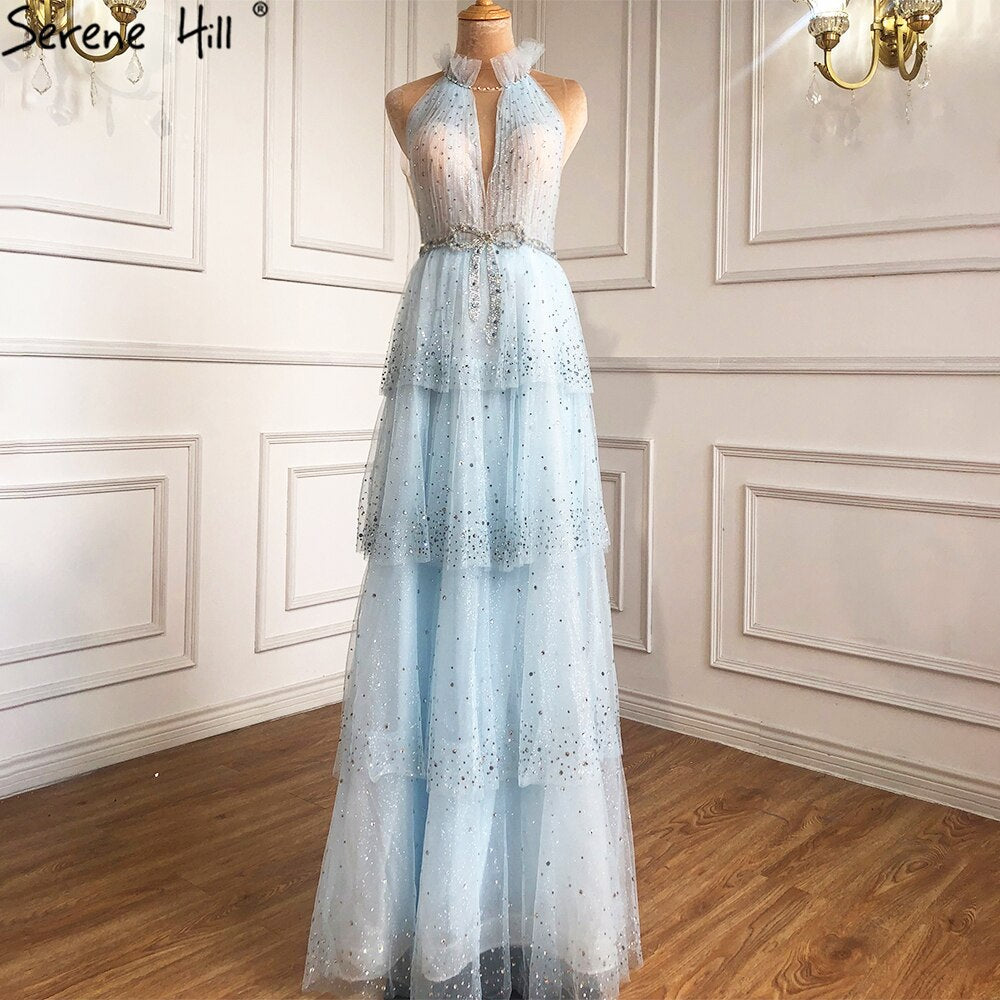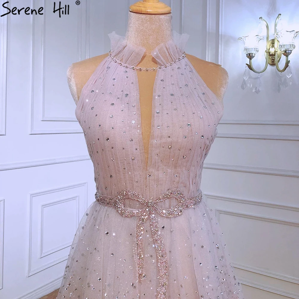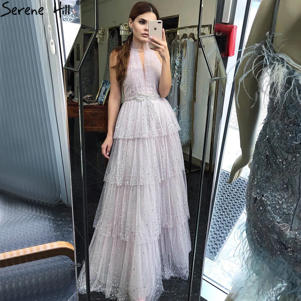 Pink A-Line Luxury Evening Dresses 2025 Halter Beaded Tiered Tulle For Women Party LA70806