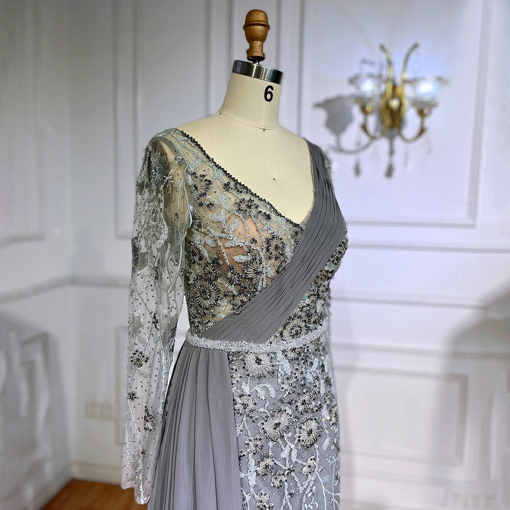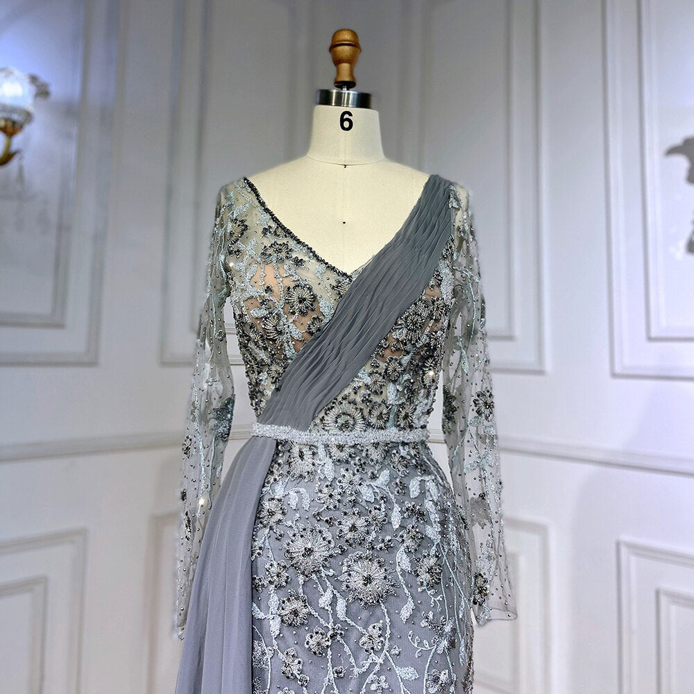 Pink Elegant Mermaid Sexy With Overskirt Beaded Luxury Evening Dresses Gowns For Women Arabic Party 2025 LA71835