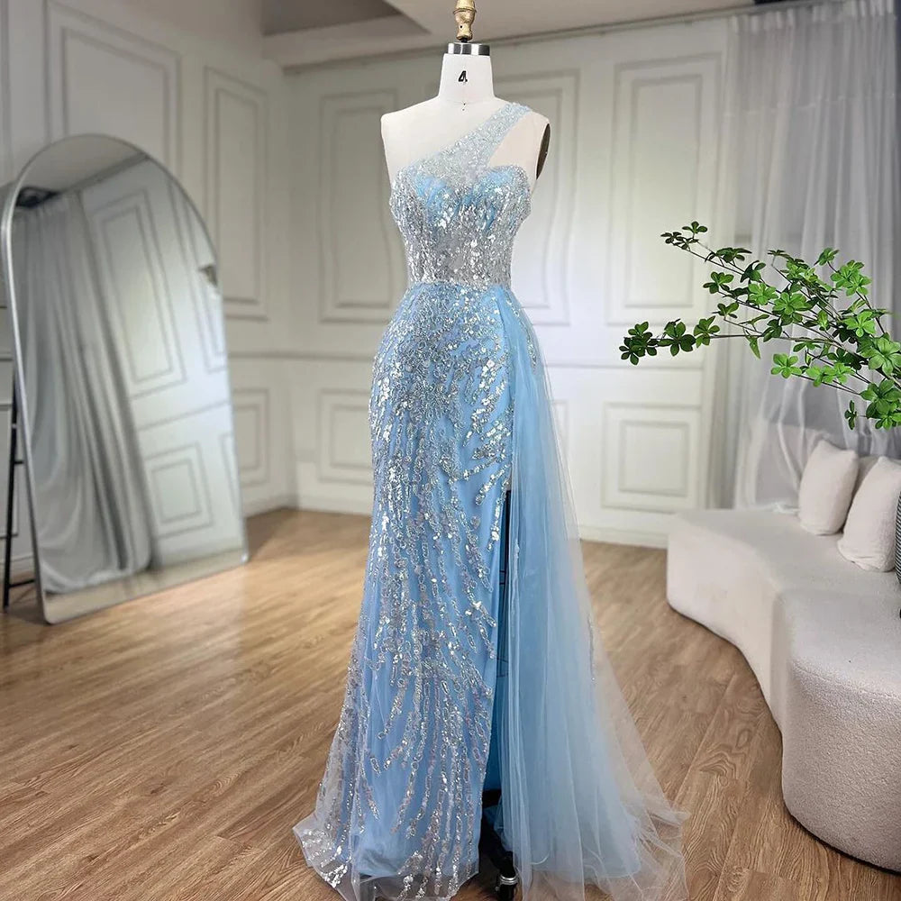 Pink Mermaid Overskirt Evening Dresses Gowns 2025 One Shoulder Beaded Elegant For Women Party LA71616