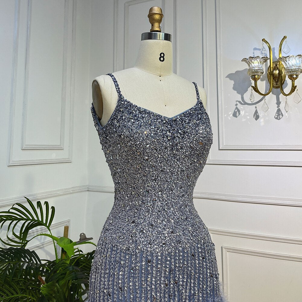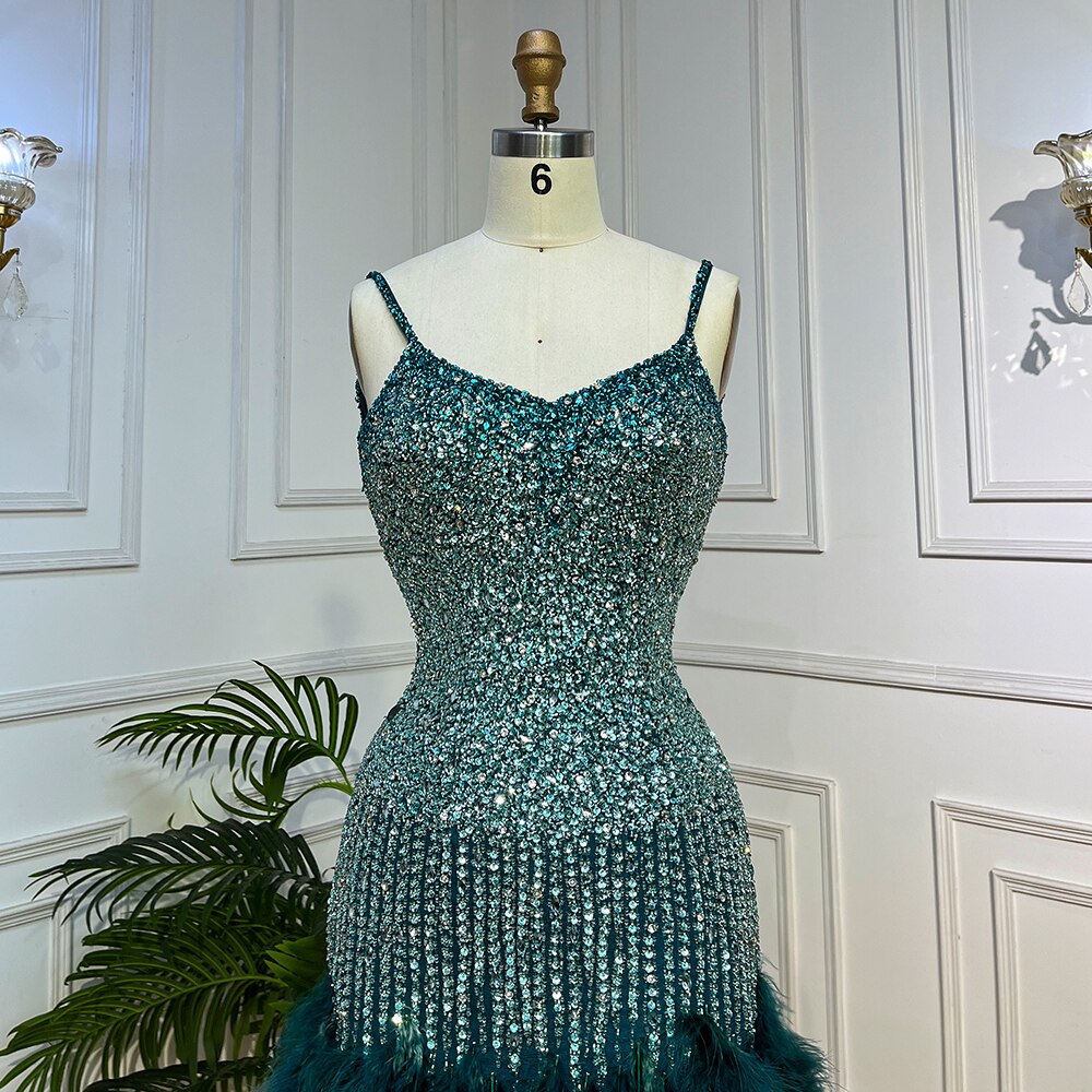 Pink Mermaid Sweatheart Spaghetti Strap Short Evening Dresses Beaded Feather Mini Gowns 2025 For Women Party LA72039