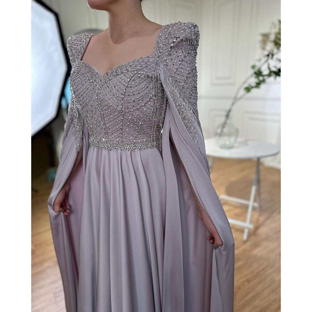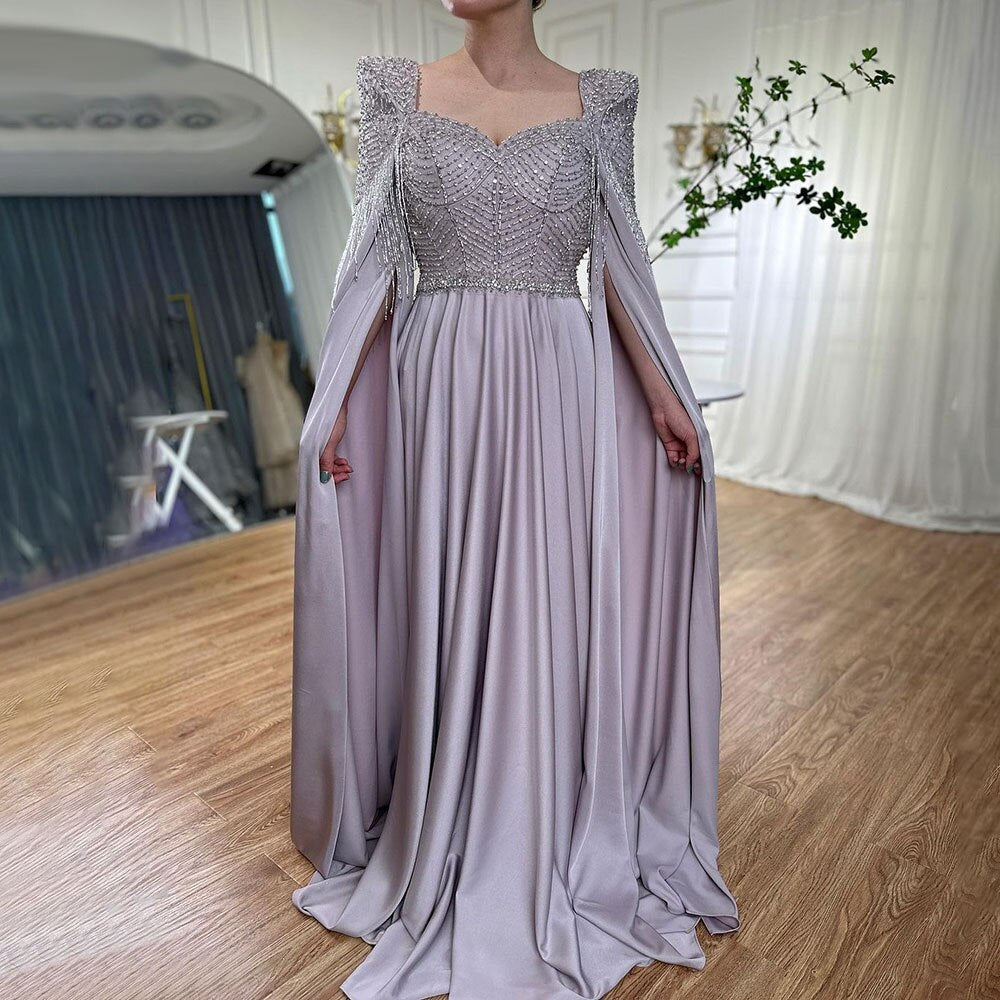 Pink Muslim Elegant Mermaid Cape Sleeves Evening Dresses Tassel Beaded Gowns 2025 For Women Wedding Party LA72159