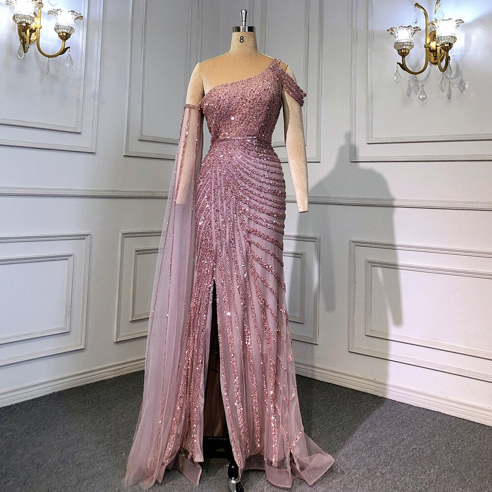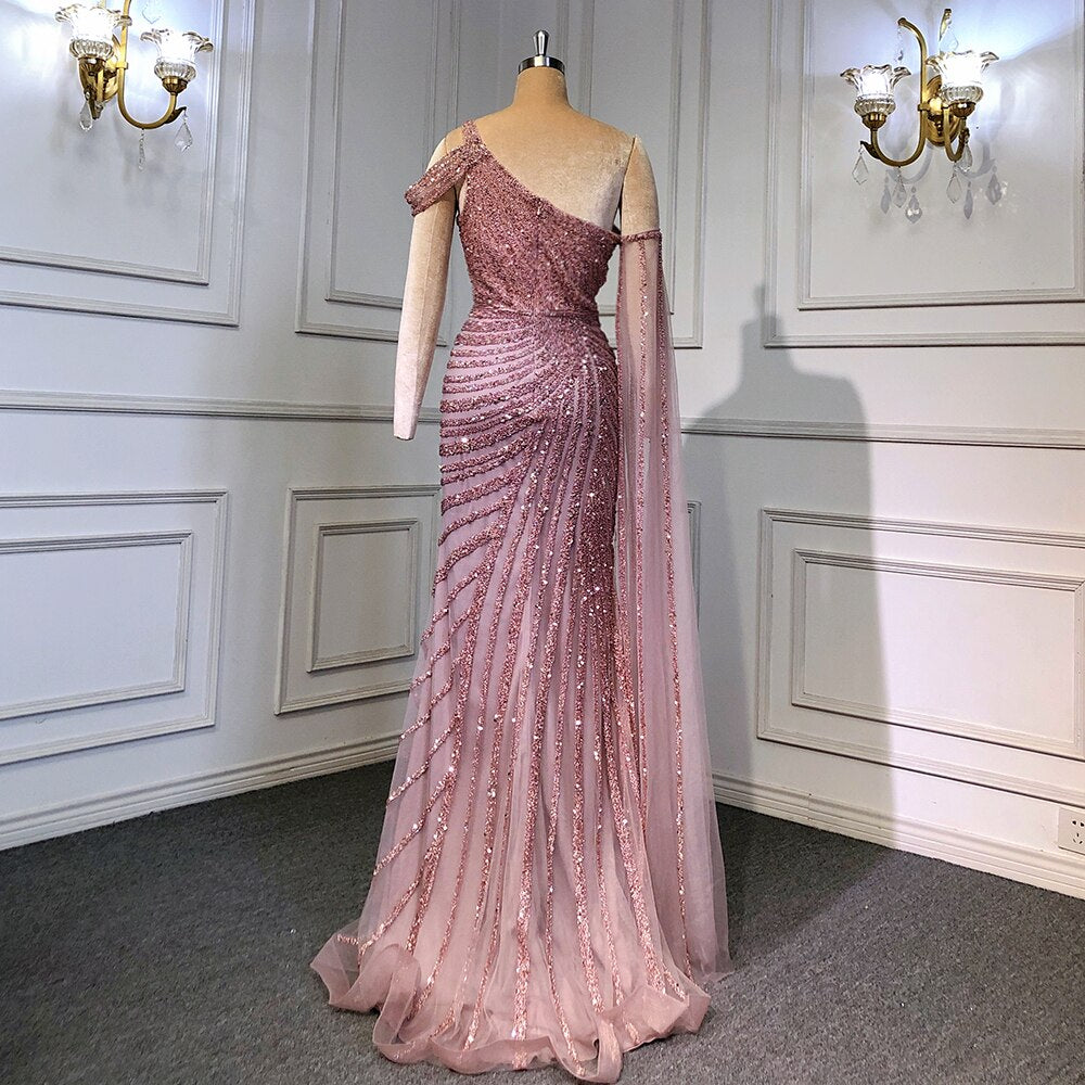 Pink One-Shoulder Cape Sleeve Evening Dresses Gowns 2025 Luxury Mermaid Beaded Elegant For Women Party LA71589