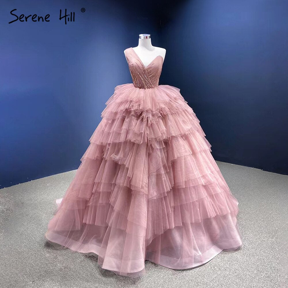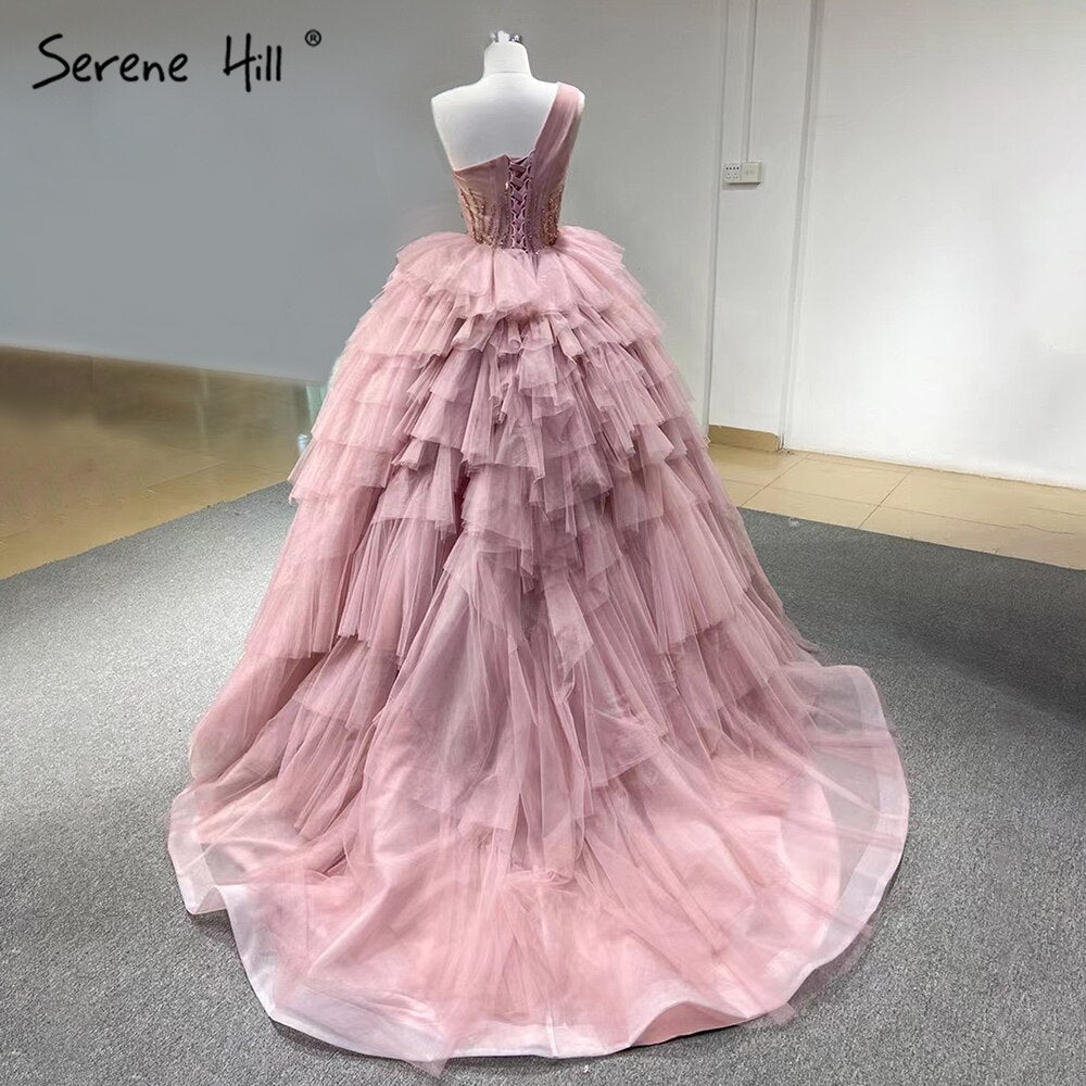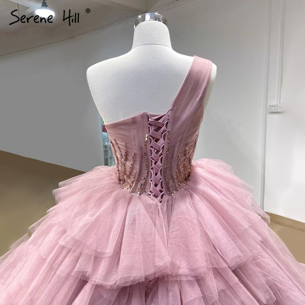 Pink One Shoulder Wedding Dresses 2025 Ruffles Beaded Sexy Bridal Gowns HM66934D Custom Made