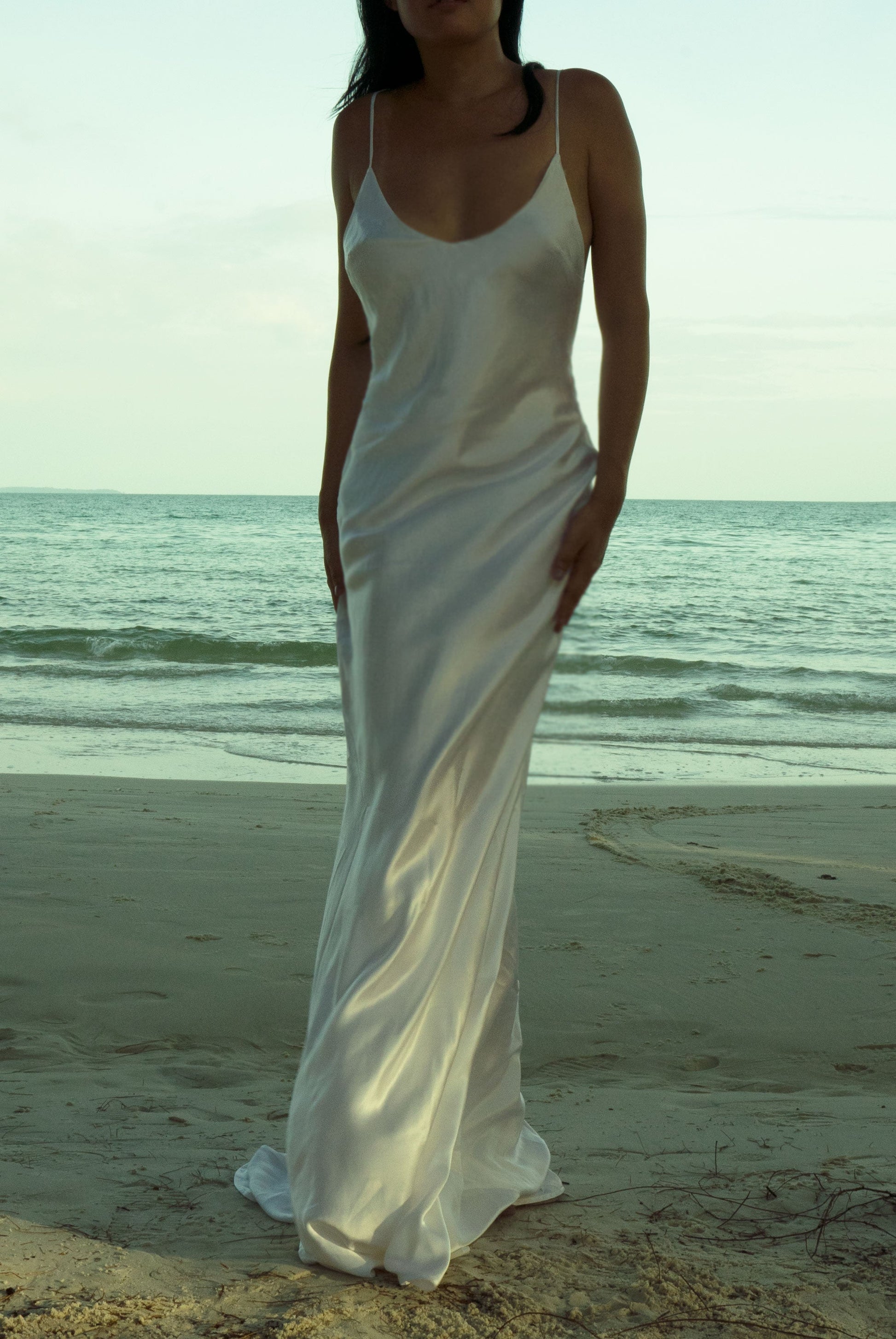 Hold the measuring tape at your hollow while a friend pulls it down to the length you want your dress.