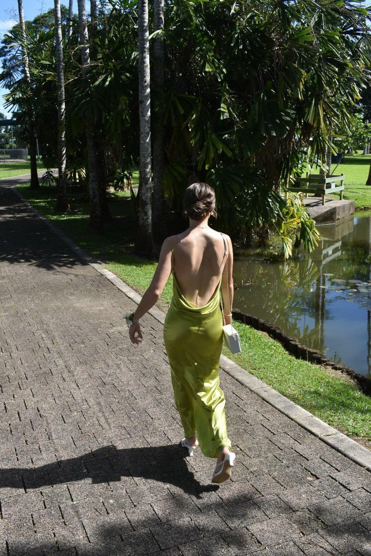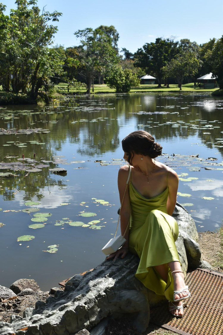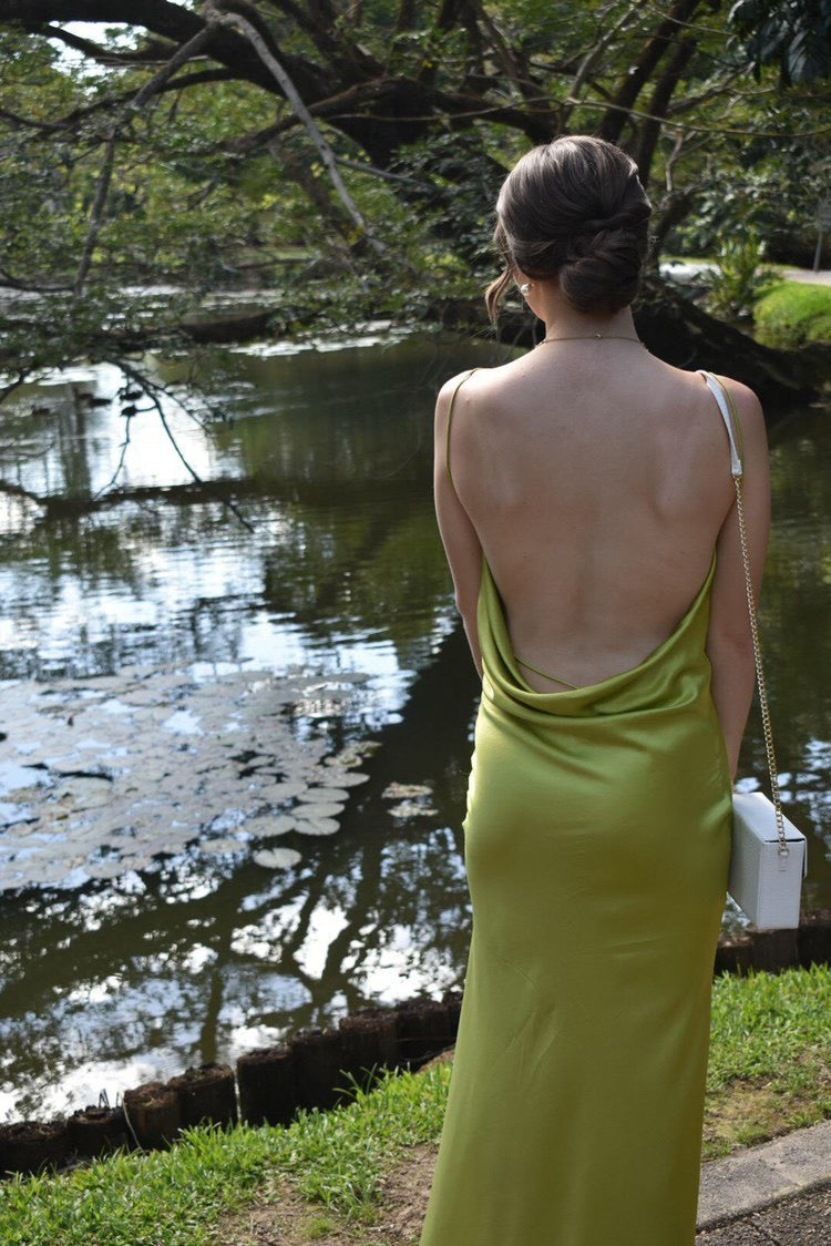 This dress is crafted from our swatch #43. which is a beautiful apple green color.